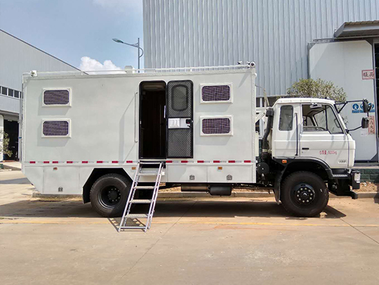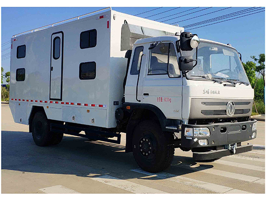 三、東風(fēng)四驅(qū)越野宿營(yíng)車, 4驅(qū)越野宿營(yíng)車用途:適用公安、特警、公安、邊防、衛(wèi)生、交通、礦山、地質(zhì)、軍隊(duì)等部門]長(zhǎng)期野外作業(yè)、勘察、救援、搶險(xiǎn)、救災(zāi)等宿營(yíng)用,箱體空間利用大化。內(nèi)部配置:配備前儲(chǔ)物柜、后儲(chǔ)物柜、液晶電視機(jī)應(yīng)急燈、頂燈、頂置空調(diào)、床墊、被褥等。選裝配備8組豪華折疊臥鋪、未鋪上下梯、安全保險(xiǎn)帶、電源插口等,細(xì)節(jié)精致。外置燃油加熱器、頂護(hù)欄、前爬梯、隱藏抽拉梯、專用房車門、專用玻璃滑窗、警示燈等。