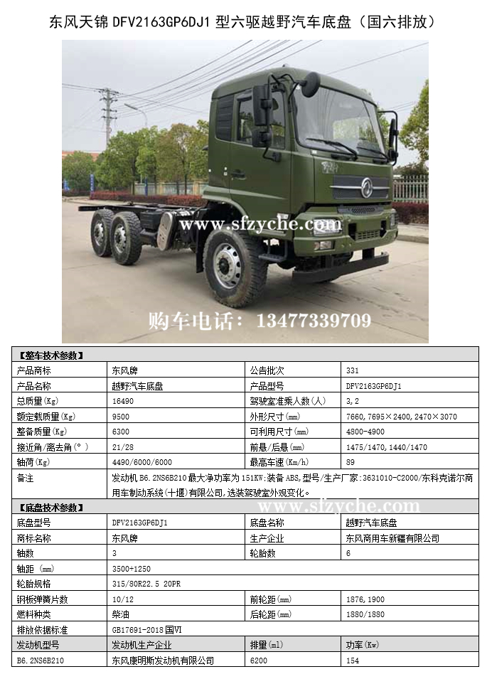 新聞中心東風天錦DFV2163GP6DJ1型六驅越野汽車底盤參數(shù),國六排放六驅天錦系列公告在第331批《道路機動車輛生產(chǎn)企業(yè)及產(chǎn)品公告》新產(chǎn)品公示中已公示,公示完成即可正常上戶。