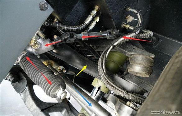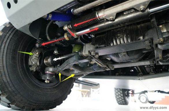 藍(lán)色箭頭:左前轉(zhuǎn)向拉桿至左前轉(zhuǎn)向節(jié)