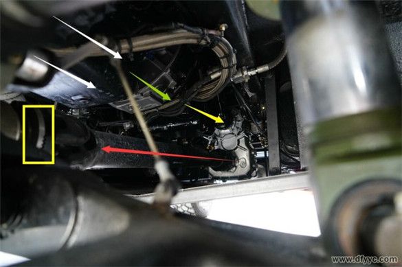 綠色箭頭2:指示出可以調(diào)節(jié)車身高度的右后油壓減震器