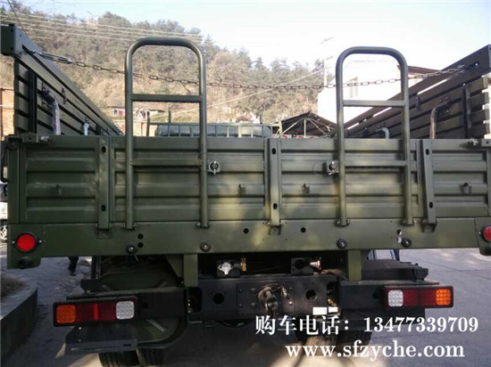 東風國五天錦EQ1120GA2型運兵車,4×2驅動,D530平頭一排半平頂駕駛室,,軸距3800mm,康明斯ISD245 50國五排放245馬力,6.7升發(fā)動機,八擋變速箱,帶電加熱(預熱塞)冷起動裝置,全鋼全鋼 主油箱160L,80L副油箱,Φ395mm推式膜片彈簧離合器,東風 4.5噸前橋,9噸后橋,主減速比5.286,車架斷面250×80×(7+4)mm,鋼板彈簧片數7/9+6,9.00R20鋼絲胎,電動玻璃升降器,中控門鎖,通道式儀表板,帶空調,車廂內部尺寸為4950x22325x600mm鐵木混合結構,邊板帶坐凳,板材采用國標鋼材,邊板1.2mm,底板為3mm的花紋鋼板,車廂底橫梁用槽鋼加固,車廂縱副梁全槽鋼結構,能滿足客戶運輸重型貨物,適應部隊野外使用及冰雪路面行駛要求。全面繼承東風40多年軍車越野車制造經驗,動力總成匹配合理,生產技術成熟穩(wěn)定,整車車輛全面通過軍檢。