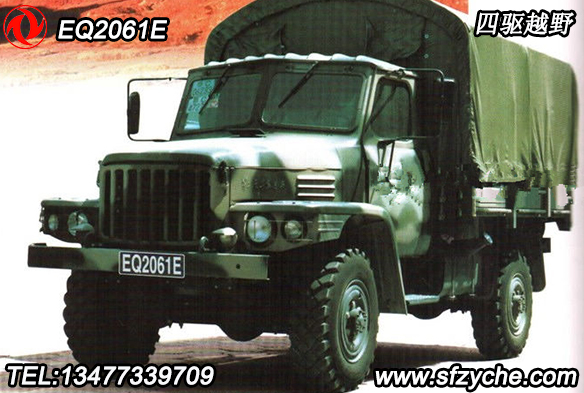 EQ2061E是東風汽車公司在6×6型EQ2081E(EQ240)基礎上開發(fā)出的。采用相同的100kW直列六缸水冷汽油發(fā)動機后,整車動力性有較大改善,最高車速90km/h,0~60 km/h加速時間為25秒。