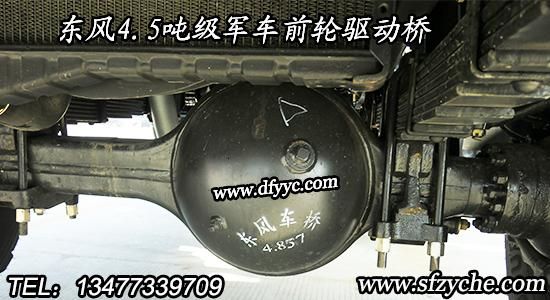 東風(fēng)六驅(qū)平頭軍車(chē)前橋采用東風(fēng)德納4.5噸級(jí)前置驅(qū)動(dòng)車(chē)橋,這種采用三肖式等速萬(wàn)向節(jié)式的軍用驅(qū)動(dòng)前橋主要用于以下車(chē)型:早期的東風(fēng)3.5噸級(jí)六驅(qū)尖頭軍車(chē)EQ245、EQ2100E、EQ2100E6D等三種尖頭六驅(qū)軍車(chē),后期主要應(yīng)用在東風(fēng)平頭軍車(chē):EQ2102、EQ2162、DFS5160TSML型六驅(qū)軍車(chē)上。