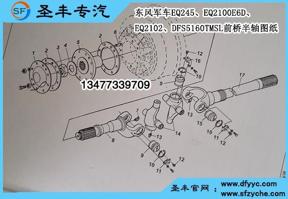一、東風(fēng)軍車(chē)前橋半軸總成圖紙