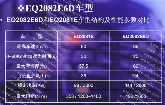 EQ2082E6D型二噸半越野汽車是EQ2081E(EQ240)車型的改進(jìn)型,2000年9月設(shè)計(jì)定型,2001年4月投產(chǎn)。該車型以EQ2081E為基礎(chǔ),針對EQ2081E車型多年來在使用中所暴露出的問題與不足,并充分利用東風(fēng)公司近年來在其它車型上研制開發(fā)的成熟總成及結(jié)構(gòu),主要進(jìn)行了如下8項(xiàng)改進(jìn)設(shè)計(jì):1.換裝康明斯6BT5.9型降扭矩增壓柴油發(fā)動(dòng)機(jī)、2.采用350膜片彈簧離合器,液壓氣助力操縱、3.采用動(dòng)力轉(zhuǎn)向系統(tǒng)、4.采用吊掛式踏板操縱機(jī)構(gòu)、5.采用電動(dòng)雨刮器 、6.采用24V電氣系統(tǒng)及符合法規(guī)的新式電器、儀表和開關(guān)、 7.改進(jìn)駕駛室總成、8.采用PTC進(jìn)氣預(yù)熱冷起動(dòng)裝置。