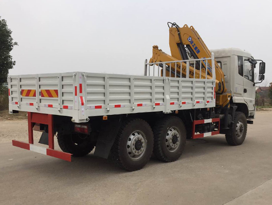 2. 采用徐工5噸折臂式隨車吊,SQZ105型徐工原廠吊機,最大起重質量5噸,三節(jié)臂,舉升高度11米,工作半徑8米,全液壓,全回轉,車廂尺寸4.25米,遠程油門控制,下操作。