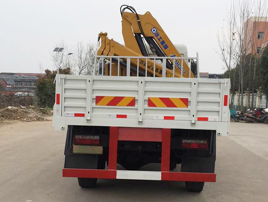 3. 采用三一5噸直臂式隨車吊,SPS12500型三一原廠吊機,吊機自重2.27噸,最大起重質量5噸,四節(jié)臂,舉升高度13.4米,工作半徑11.9米,一體式回轉,車廂尺寸4.25米,遠程油門控制,下操作,選裝液壓后支腿,上操作高空座椅。
