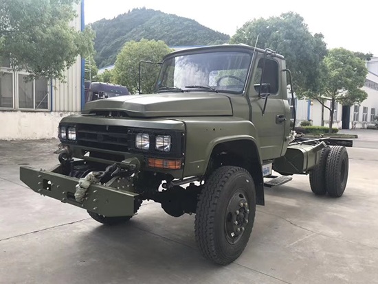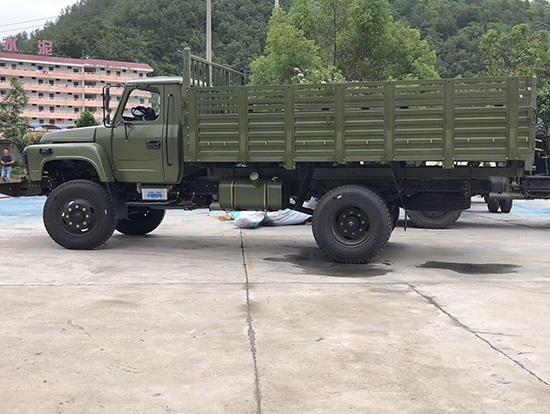 東風牌EQ1093F型四驅載貨汽車詳細配置:采用康明斯B170-33柴油發(fā)動機,機械式六檔變速箱,軸距3950mm,單片干式φ325mm離合器,2.7T驅動前橋, 7.8T驅動后橋,232×75×6.5 mm車架,9.00-20尼龍?zhí),東風140尖頭單排駕駛室,斷氣剎,動力轉向。