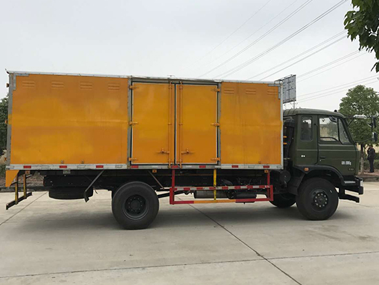 東風國五四驅越野廂式車廂體材質:廂體為雙層金屬骨架結構,外部為冷扎鋼板,內壁采用鋁合金板蒙面,夾層為隔熱阻燃材料填充,鋁花紋底板,側對開門,后雙開門,廂體尺寸6050×2360×2100(mm)