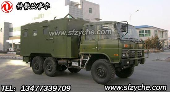 東風六驅越野炊事車是采用東風軍用二類汽車底盤改裝而成的后勤飲食保障裝備,該車機動性能好,專業(yè)性強,自動化程度高,自然環(huán)境適應性強,并能在駐車和行車時進行炊事作業(yè),可保障執(zhí)行野外任務部隊的飲食和飲水供應。